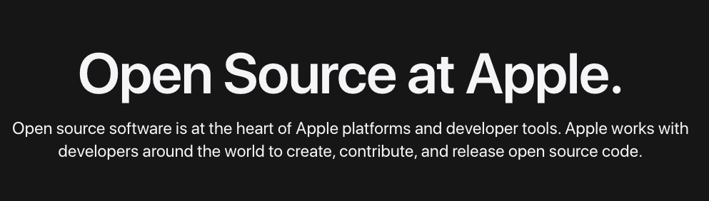 “El open source es el corazón de las plataformas de Apple y sus herramientas de desarrollo”, así lo dice Apple en su rediseñado sitio web en donde da a conocer todas las herramientas de código abierto con las que cuenta, así como algunas otras donde participa.
